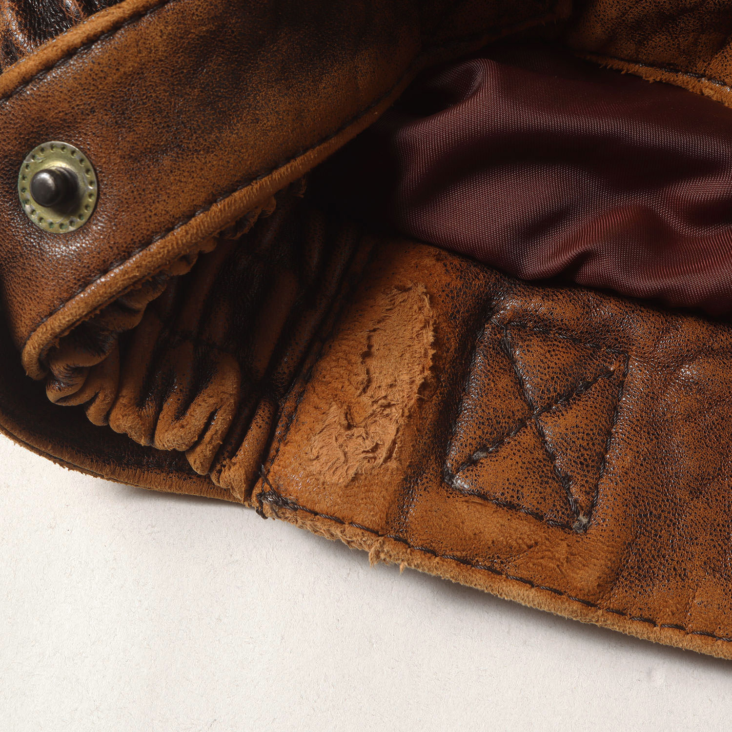・レザーに擦れ、裏地に変色あり