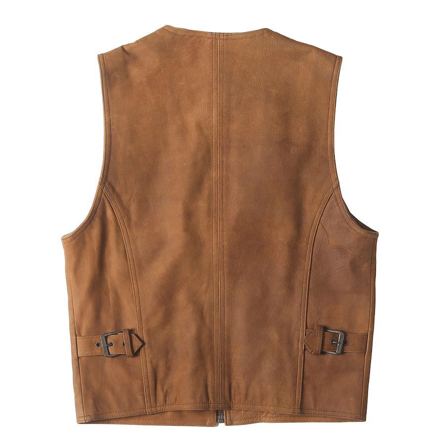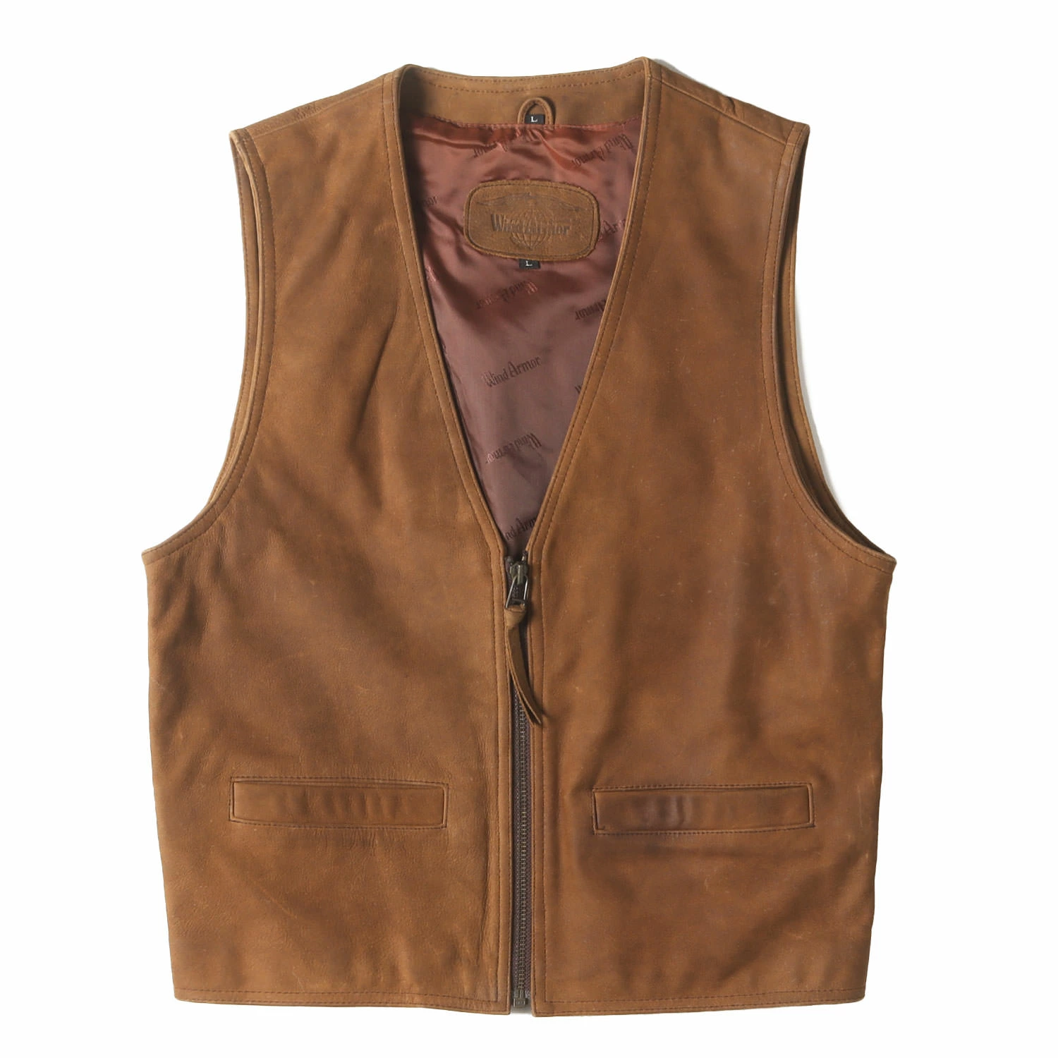 WIND ARMOR Brown Vest, Size L | 90s Cowhide Leather Zip Vest | Top | 90s Vintage [Men's] [Pre-owned] [K4616]