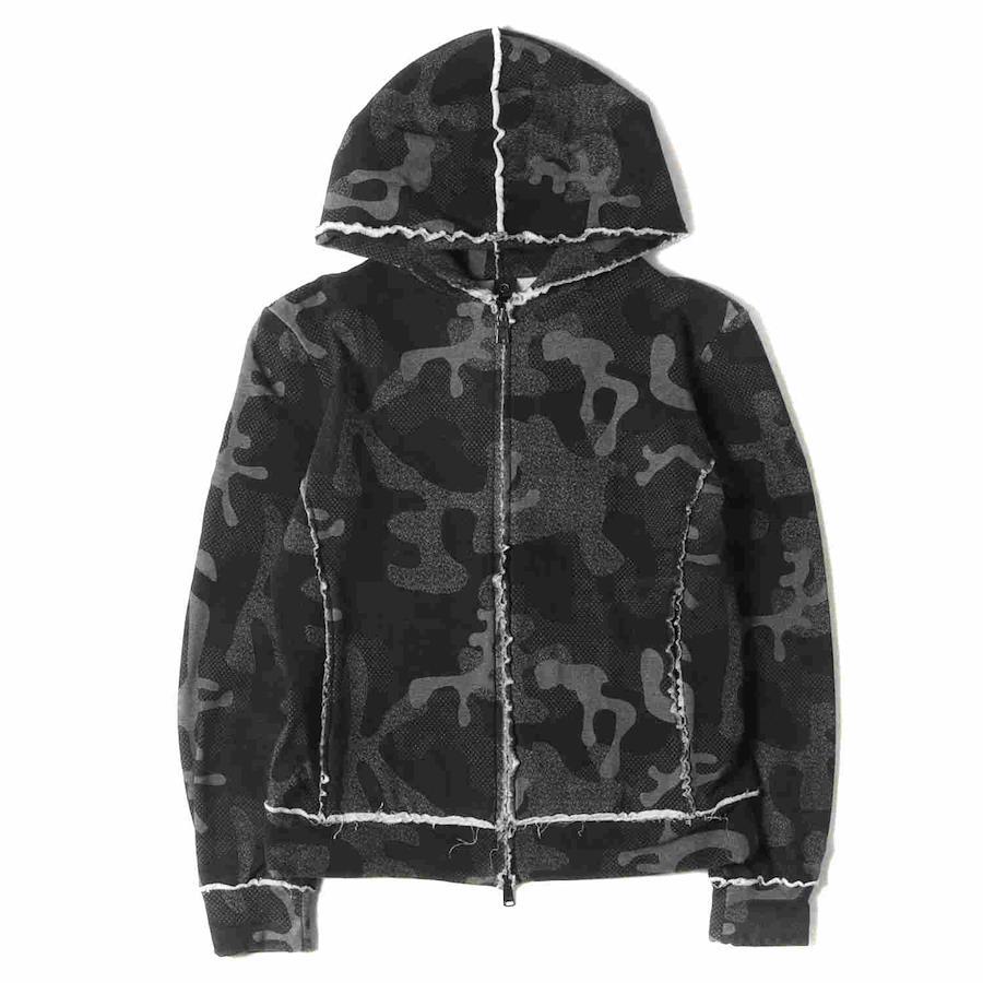 - 伸縮性の高いスーパーストレッチコットン裏毛スウェット生地を使用し、全体にカモ柄プリントがあしらわれ、細身のシルエットで仕上げられたスウェットパーカー"super stretch parka"です。