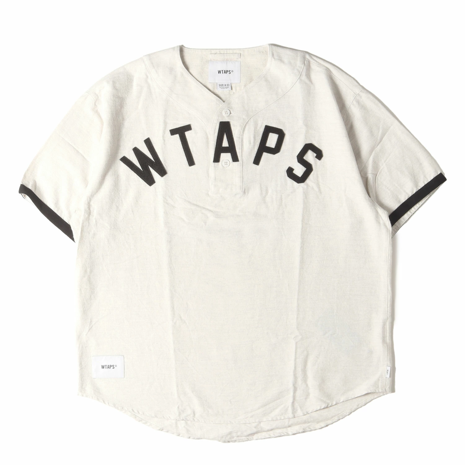 WTAPS Shirt, Off-White, Size L | 22SS Appliqué Logo Flannel Baseball Shirt (LEAGUE SS / COTTON FLANNEL) | Men's Casual Short Sleeve Shirt (Pre-owned) [K4614]