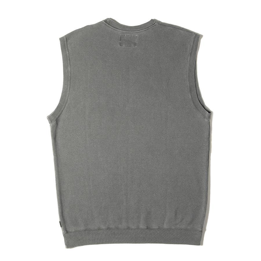 | 商品説明 | ハードな製品染め加工を施したクルーネック裏毛スウェットベストになります。 |