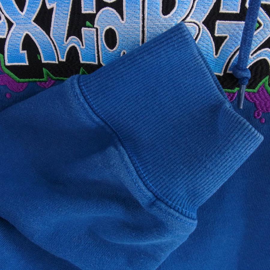ブルー系【モデル】EMBROIDERY GRAFFITI HOODED SWEAT プルオーバー フード スウェット パーカー