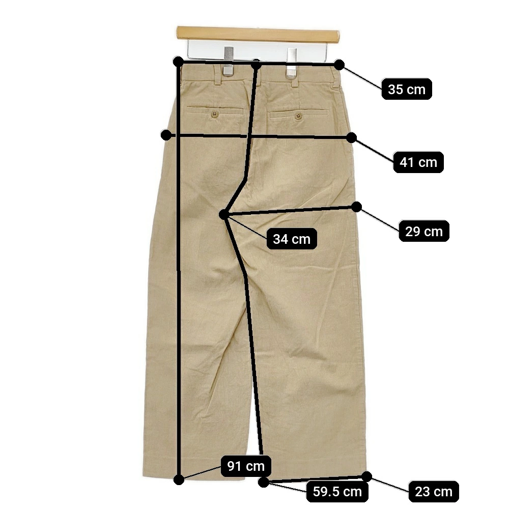 | 実寸サイズ | 総丈:約91cm ウエスト:約35cm 股上:約34cm 股下:約59.5cm ヒップ:約41cm ワタリ幅:約29cm 裾幅:約23cm ※採寸画像がある商品はハンガーに吊るした状態での計測のため、平置きでの採寸とは差が生じる場合がございます。平置きでの実寸サイズをご希望の場合は、ご購入前に必ずご質問ください。 ※記載以外のサイズが合わないことを理由とした返品はできませんので、 記載部分以外で実寸サイズの気になる箇所があれば必ず購入前にご質問ください。 |