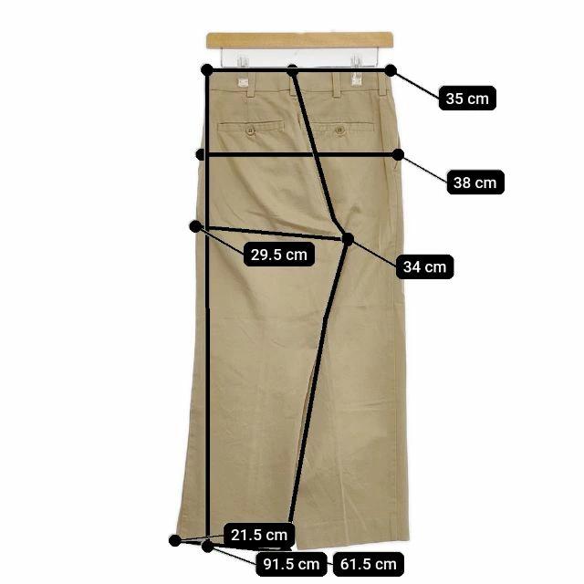 | 実寸サイズ | 総丈:約91.5cm ウエスト:約35cm 股上:約34cm 股下:約61.5cm ヒップ:約38cm ワタリ幅:約29.5cm 裾幅:約21.5cm ※採寸画像がある商品はハンガーに吊るした状態での計測のため、平置きでの採寸とは差が生じる場合がございます。平置きでの実寸サイズをご希望の場合は、ご購入前に必ずご質問ください。 ※記載以外のサイズが合わないことを理由とした返品はできませんので、 記載部分以外で実寸サイズの気になる箇所があれば必ず購入前にご質問ください。 |