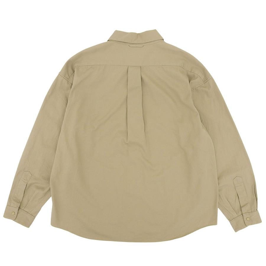 YAECA Drop Shoulder Comfort Long Sleeve Shirt, Beige Cotton, 10119