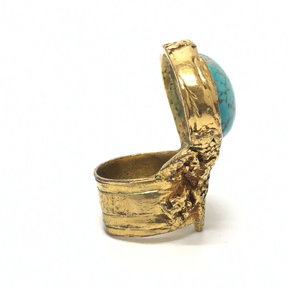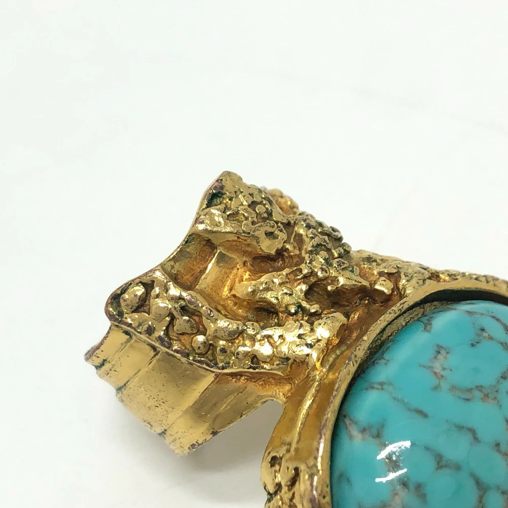 YVES SAINT LAURENT Turquoise Ring, Approximately Size 13, Arty Ring, Vintage, Women's, Gold, Approximately Size 13 [Pre-owned]