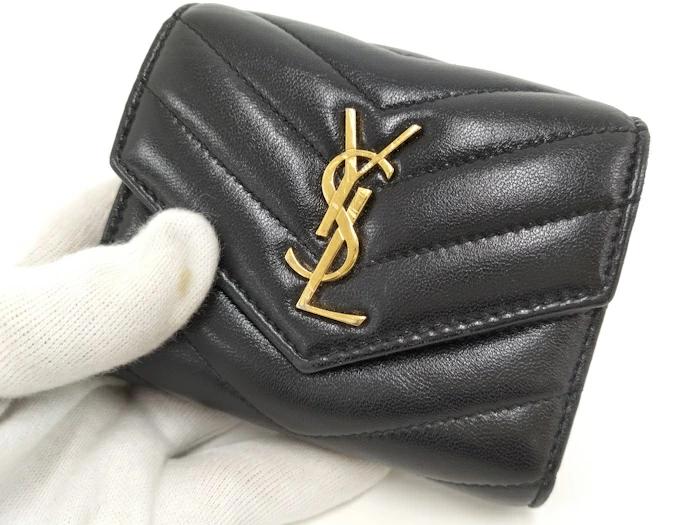YVES SAINT LAURENT Cassandra tri-fold wallet in black leather