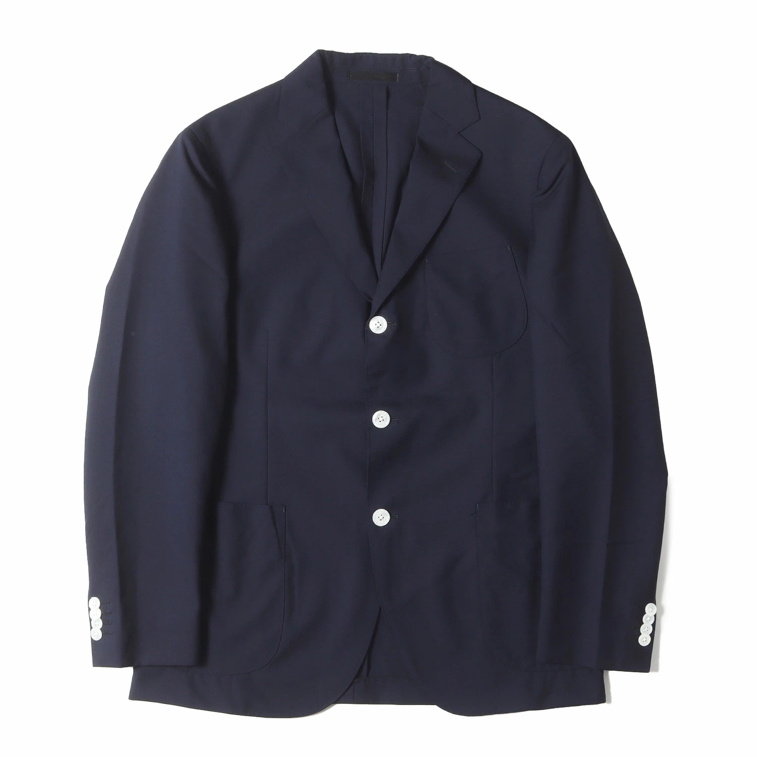 - VITALE BARBERIS CANONICO社製Super120'S素材を使用し、フロント段返り3つボタン、背抜き裏地、袖裏ストライプ裏地、袖先開き見せ4つボタン、フロントダーツ、サイドベンツ仕様で仕上げられたテーラードジャケットです。